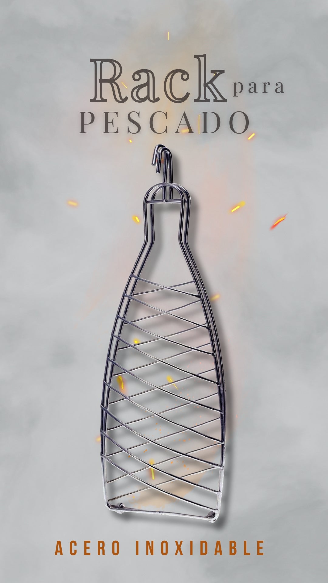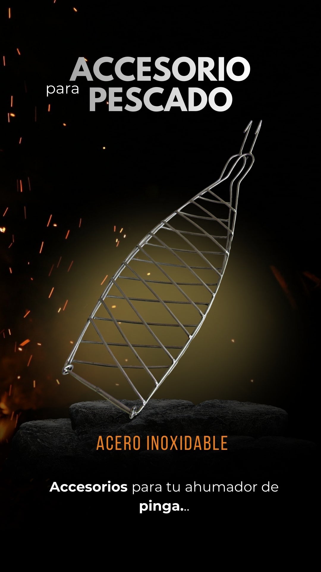 Accesorio para hacer pescado en el barril. Fabricado en varilla de acero inoxidable.